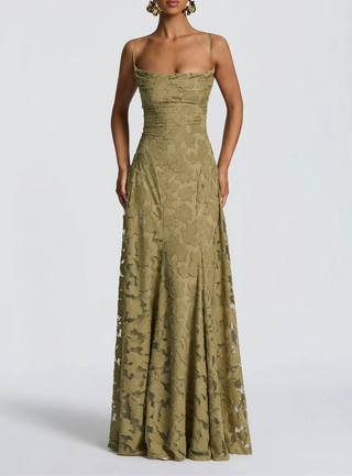 Dieses Maxikleid, das für anmutige Bewegungen entworfen wurde, verkörpert die Essenz entspannter Weiblichkeit. Seine fließende Silhouette umspielt die Figur und zaubert eine schmeichelhafte Silhouette, die Ihre Ausstrahlung mit subtiler Eleganz unterstreicht. Sorgfältig verarbeitete Details und ein weiches, hochwertiges Material machen es zur perfekten Wahl für romantische Abende, besondere Anlässe oder einen eleganten Alltagslook.